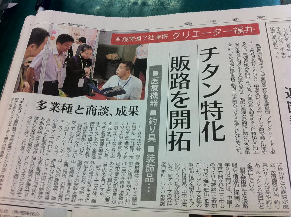 ホーム > お知らせ > メディア掲載記事 > チタンクリエーター福井の海外販路開拓の取り組みが福井新聞で紹介されました!