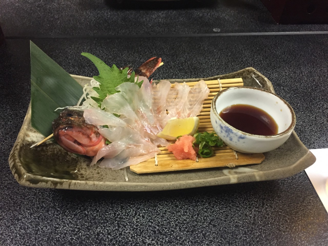 こちらはお料理の一部「カサゴの御造り」と「豚の角煮」
