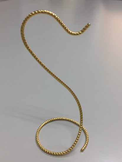 ホーム 加工事例 スウェージング ミラーバー眼鏡スタンド チタンクリエーター福井の加工事例 ミラーバー眼鏡スタンド ミラーバー(*)を曲げ加工後、金メッキ加工を施しました。 曲げ形状は任意の形に対応する事が出来ます。 ミラーバー:スウェージング(*)加工を利用しデザイン性に富んだ線材(棒材)を言います。 スウェージング加工:母材となる材料を回転させながら、「叩いて」「伸ばす」加工技術です。 優れたチタン加工技術 チタン素材 プレス・鍛造・圧延 スウェージング 切削・転造 曲げ・プレス曲げ・コイリング 表面処理 研磨 レーザー加工 接合 その他の技術 加工事例 設備紹介 お知らせ ブログ お問い合わせ チタン・チタン合金の素材選定からスウェージング加工、切削加工、転造加工、圧延加工、ろう付、チタン塗装・メッキ、プレス加工、部品製造・プレス加工などチタン加工おのことなら何でもご相談ください。 よくあるご質問 お見積り・ご相談フォーム