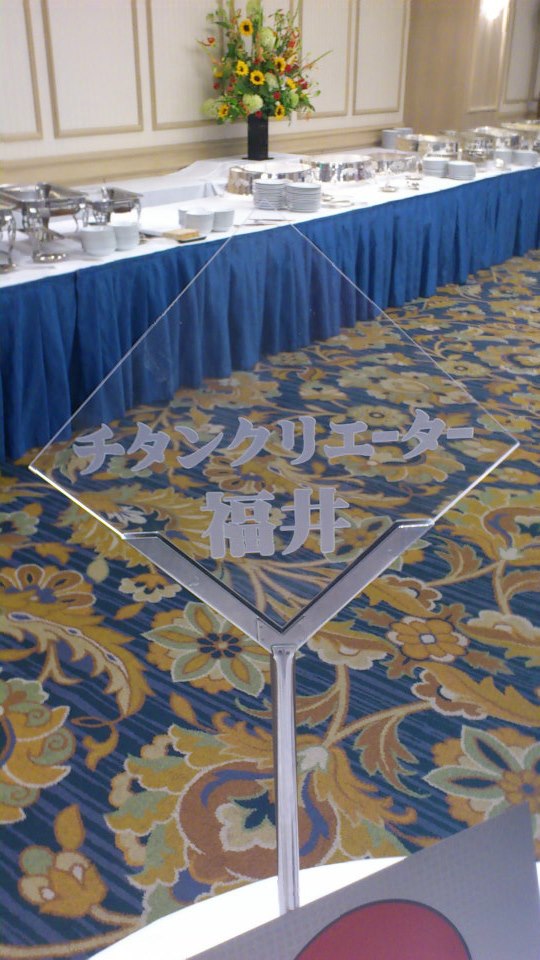 ここから新しい交流がはじまるのを期待していると、緑川社長のご好意でチタンクリエーター福井の展示場所を設けていただきました。