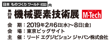 機械要素技術展(M-Tech)とは、軸受、ベアリング、ねじ、ばねなどの機械要素や、金属、樹脂に関する加工技術を一堂に集めた専門技術展です。毎年、設計・開発、製造・生産技術部門を中心とした製造業ユーザーが多数来場し、出展企業と商談を行う加工技術の一大イベントです。